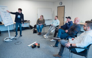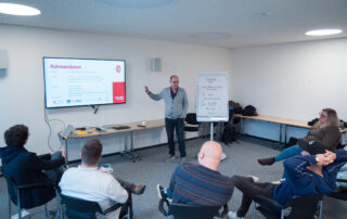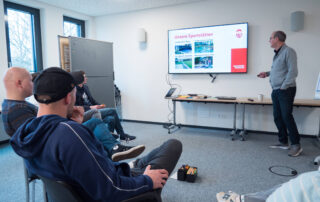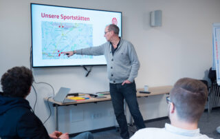 Nachdem wir bei einem Becher Kaffee und leckerem Frühstück das im letzten Jahr Erreichte, die DNA des TuS mit seinen Werten und die Ziele für den Workshop-Tag definierten und damit einen gelungenen Start in eine erfolgreiche Klausurtagung hatten, empfingen wir allesamt Frank Fechner, den 1. Vorsitzenden des ETV. Er führte uns rund 1 Stunde durch die hochmoderne und 7815 Quadratmeter große Sportstätte mit eigenem Fitnessstudio, eigener Vereinskita, Kursräumen, einer Kinderbewegungslandschaft mit Boulderanlage und Kletterwelt, Umkleiden, Parkgeschoss, Büros, Einfeldhalle und Gastronomie. Viele weitere spannende Einblicke in Strukturen, den Umgang mit Corona und die Umsetzung des „Mammutprojekts Sportzentrum Hoheluft“ lieferte Frank Fechner in seiner anschließenden Vereinspräsentation. In dem Bewusstsein, dass der rund 15.000 Mitgliederstarke ETV selbstverständlich nicht mit unserem TuS Eiche vergleichbar ist, konnten wir im Anschluss dennoch feststellen, dass sich aus den beeindruckenden Ausführungen einige interessante Aspekte herunterbrechen lassen.